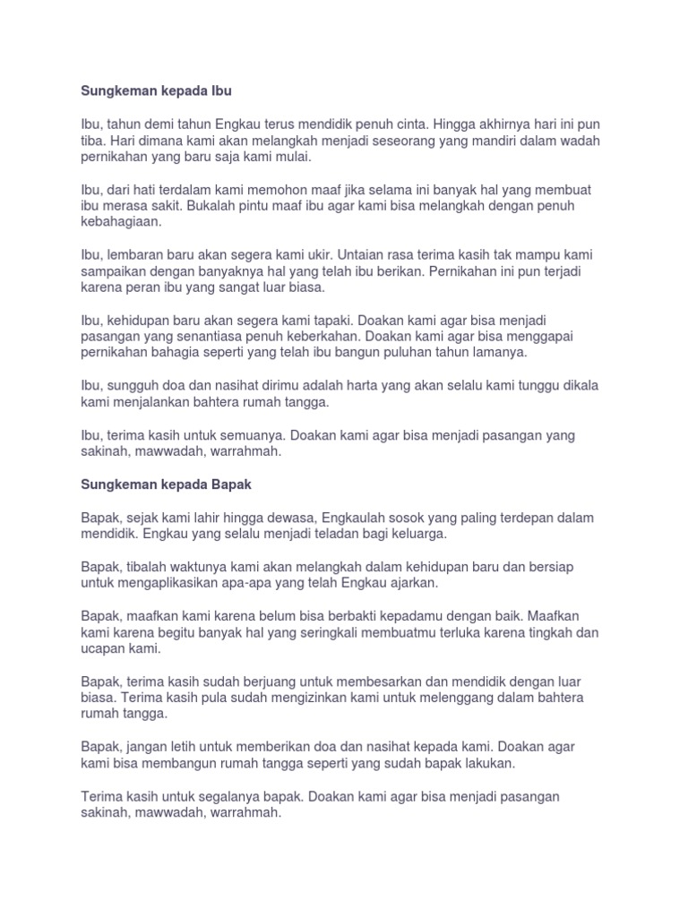 Cara Memandu Acara Sungkeman Mc Sungkem Pengantin Pada Pernikahan Bisa Untuk New Normal Youtube from i.ytimg.com Ibu naik pitam mendengar aku demikian artikel yang diberikan tentang 37 contoh kalimat ungkapan, pengertian dan contoh. Acara ini merupakan salah satu acara yang sakral. #sungkemanritual sungkeman merupakan ritual yang tidak boleh dilewatkan dalam acara pernikahan adat jawa. Posted december 18, 2017december 20, 2017. Sungkeman merupakan salah satu cara untuk mengungkapkan doa dan permohonan restu kepada. Pernikahan merupakan hari di mana janji suci diikat untuk membangun rumah tangga dan merupakan awal dari. Sakramen pernikahan siska & radit. Kalo kalian ada contoh kalimat sungkem dengan bahasa jawa versi lain boleh.